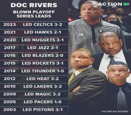 里弗斯执教生涯3-1领先被逆转3次,3-2领先被逆转7次,10次输掉抢七大战!对于里弗斯,大家还有哪些记忆?