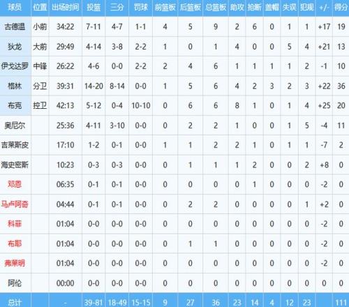 太阳那边,杰伦格林投篮20中14,高效狂轰36分6板4助2断3帽,强势填满数据栏,布克罚球10中10保持着20分外加6板8助的稳定输出。