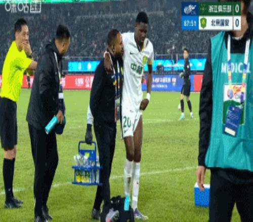 国安客场0-0战平浙江队的比赛最后时刻,恩科洛洛禁区内右侧争顶落地后受伤,随后被换下场。